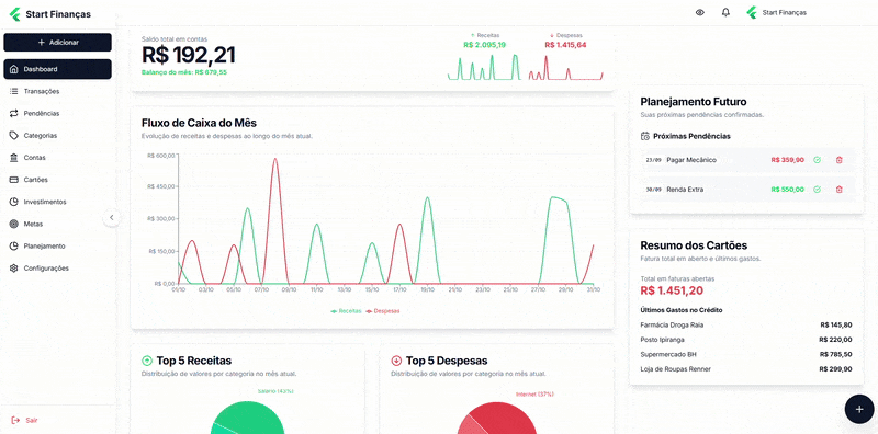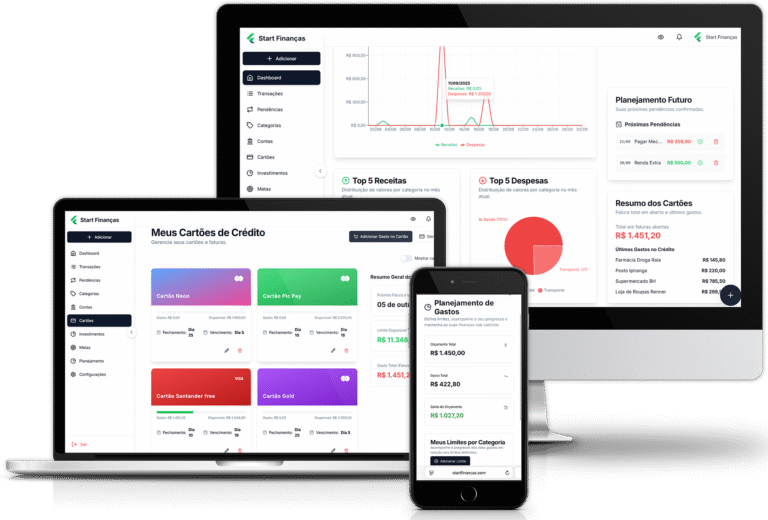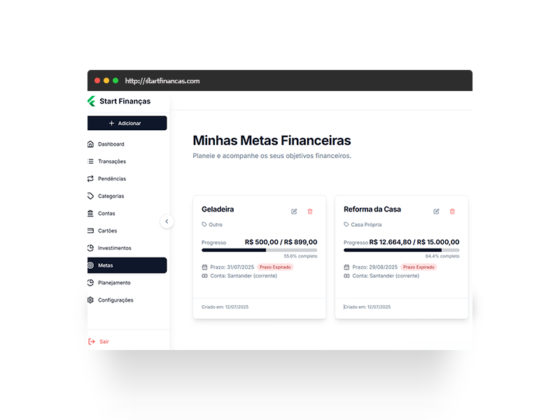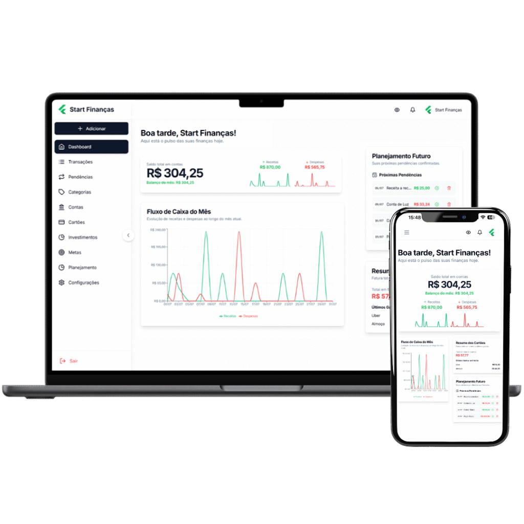 Nosso foco é 100% em finanças pessoais. A Start Finanças é a ferramenta perfeita para quem busca organizar o orçamento, quitar dívidas, criar uma reserva de emergência e planejar o futuro com mais tranquilidade e segurança.