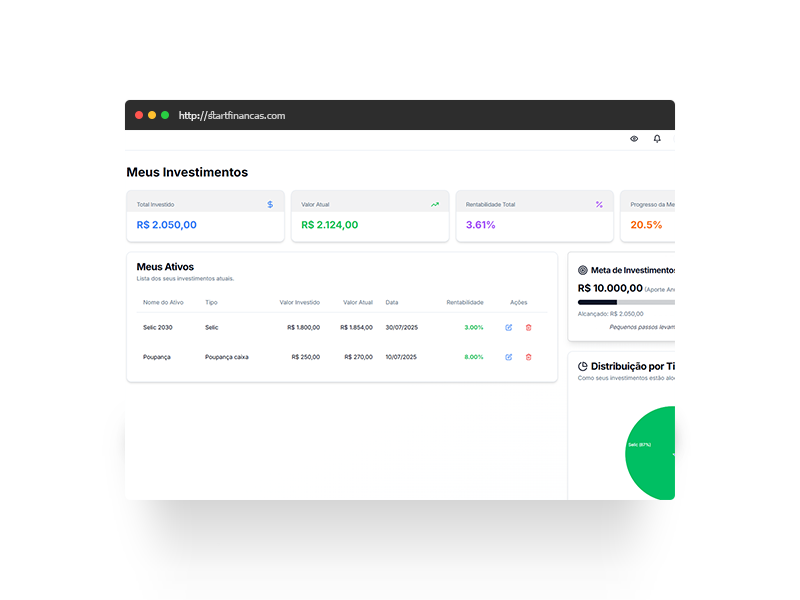 Controle seus investimentos: Ações, Poupança, Renda fixa e outros…