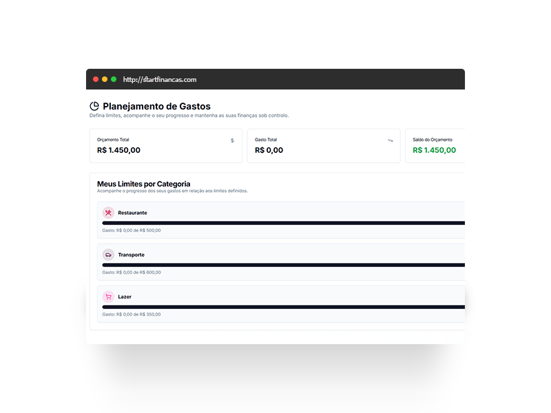 Defina quanto quer gastar por mês em cada categoria, tenha total controle dos seus gastos.